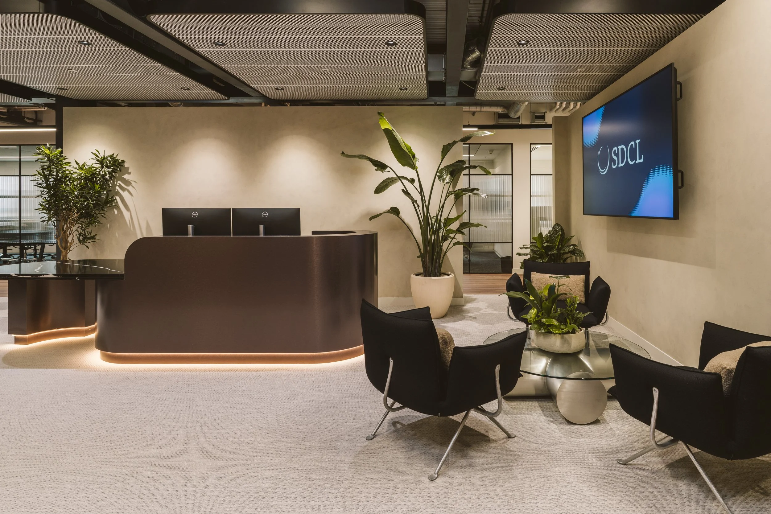 From the moment you enter SDCL’s new workspace, you’re immersed in an environment of sleek minimalism, moody warmth, and considered detail.